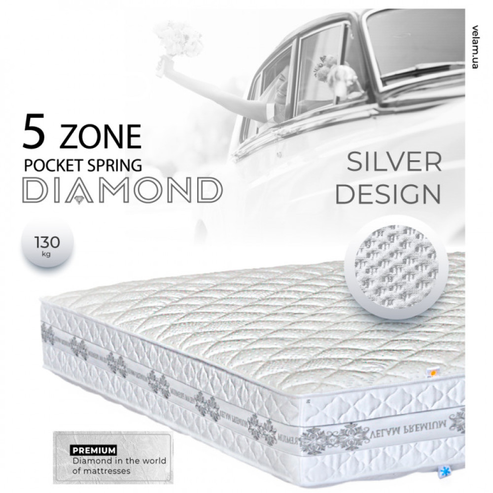 Матрац пружинний «ДАЙМОНД» ◇ 5 - Zone ВЕЛАМ Подаруйте собі, найбільший діамант у світі... Iдеальна модель серії «ПРЕМІУМ» по співвідношенню «ціна-якість».Все найкраще, створене людиною для облаштування місця сну, присутнє в його комплектації: п`ятизонний блок незалежних пружин, кокосова койра, латекс і спеціальні наповнювачі з волокнами вовни та бавовни. Матрац «ДАЙМОНД» - неперевершений рівень комфорту і преміальна якість, справді цінне придбання для повноцінного комфортного відпочинку. "Даймонд" засяяв у тканинi "Silver Design". Насолоджуйтесь воістину блискучими снами. ПАМ'ЯТКА КОРИСТУВАЧА МАТРАЦА Що буде, якщо ігнорувати Рекомендації, зазначені в "Пам'ятці"? Що необхідно врахувати при замовленні матраца нестандартної форми чи розміру? Догляд за матрацом Виконувати глибоку чистку дозволяється тільки клінінговій компанії (або хімчистці). Спеціалісти допоможуть зберегти м’якість та розміри виробу, забезпечити повне висихання наповнювачів та настилів Краще одразу звернутись до хімчистки або викликати клінінгову компанію додому. Спеціалісти допоможуть зберегти м’якість та розміри виробу, забезпечити повне висихання наповнювачів та настилів; Самостійно виведена пляма може залишити контур від миючого засобу. Також не варто застосовувати засоби зі змістом хлору; Для екстреного видалення мокрих плям скористайтесь паперовими серветками; У випадку неможливості звернення до спеціалізованої чистки скористуйтесь розповсюдженими порадами з Інтернету, які ми обрали для Вас: КЛАСИЧНІ рекомендації, як зберегти «свіжість» поверхні матраца на довго. ЧИСТКА МАТРАЦА: Суха. Волога. Виведення плям. ЯК СУШИТИ МАТРАЦ Холодний сезон ЗНІМНІ ЧОХЛИ ЗНАЧКИ на ЯРЛИКУ ДОГЛЯД за ЛІЖКОМ Якщо якість матраца продовжує Вас влаштовувати після закінчення строку служби, вказаного на ярлику, немає необхідності його замінювати. Дотримуйтесь наших порад і Ваш матрац буде довго зберігати свіжість.
